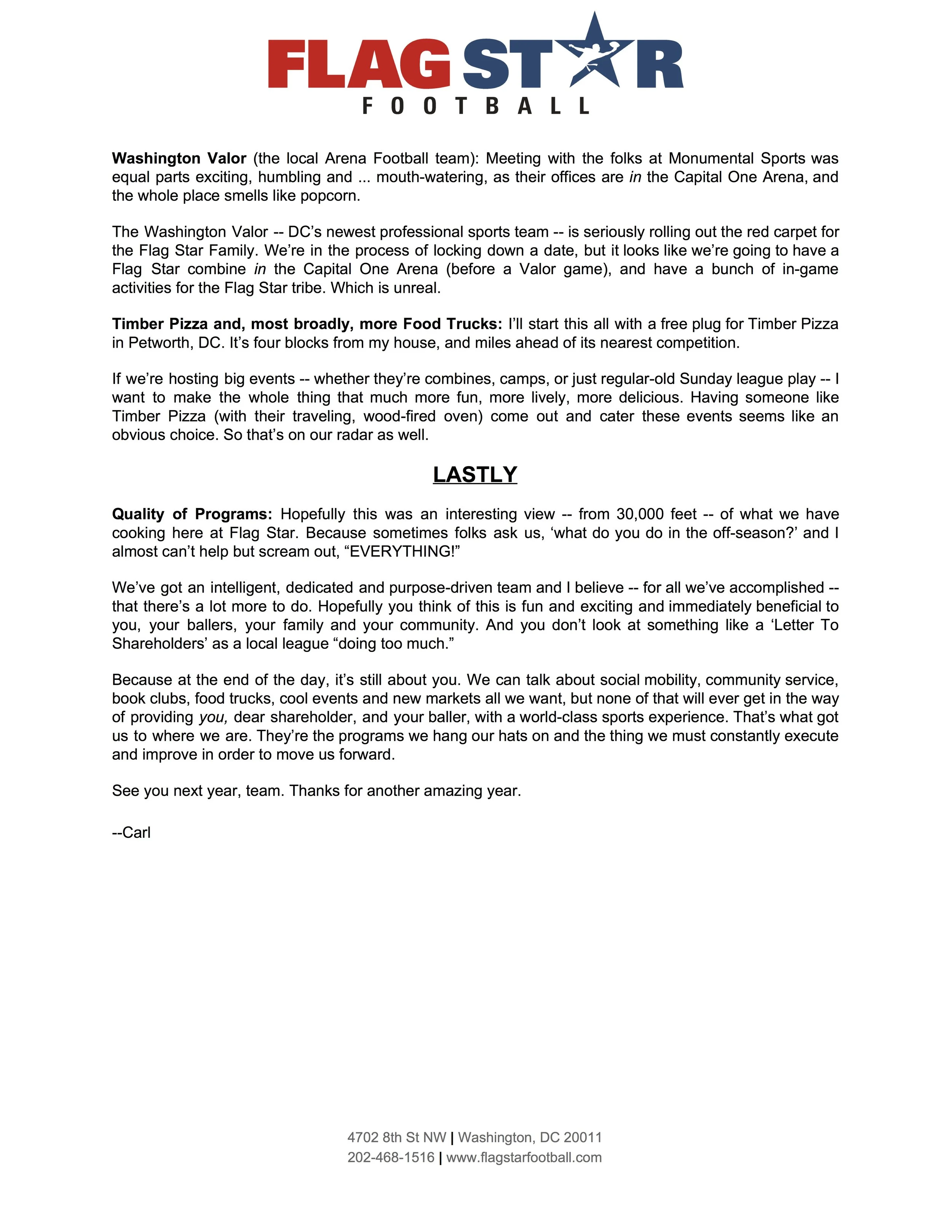 2017 LETTER TO SHAREHOLDERS